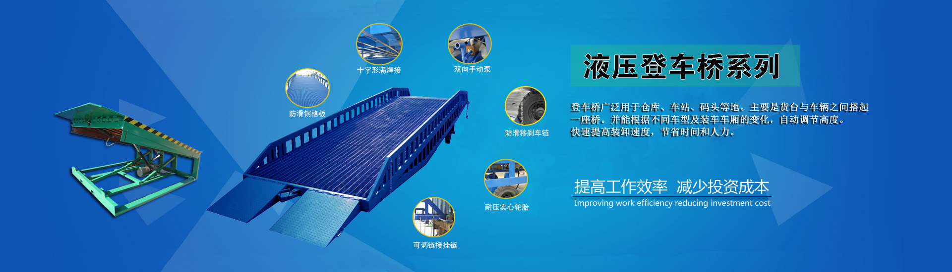 公司主要從事液壓升降機械和貨物舉升方案,主營產品有:導軌式液壓升降平臺、剪叉式液壓升降平臺、鋁合金升降機、液壓登車橋、曲臂、套缸升降機,以及各種非標產品的特殊定制升降機。
